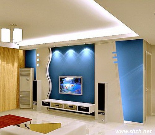 電視背景墻搭配TIPS:藍(lán)白搭配的濃郁地中海風(fēng)情,配上歐式風(fēng)格的線條設(shè)計(jì),自然簡單卻又不失大氣,同時(shí)藍(lán)色冷靜的性格,也給人帶來涼爽舒適的感受。