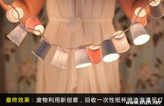現(xiàn)代社會里面各種家庭、公司以及公共場合里面一次性紙杯被大量地廣泛應用。然而,更多時候卻只被用來裝過一杯水、喝過一杯咖啡,杯子本身完好無缺。不能循環(huán)利用,扔掉又浪費的場面是否難以取舍呢?把它們一個個都收集起來,制造一串浪漫溫馨的彩燈吧!無論是晚上放松地休息,還是一頓燭光晚餐都能把它運用得淋漓盡致哦!