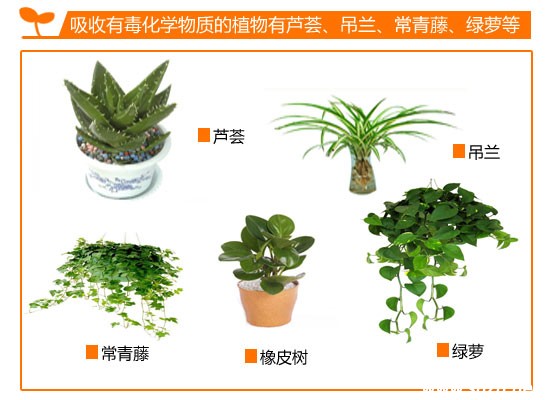 1、能吸收有毒化學(xué)物質(zhì)的植物:
