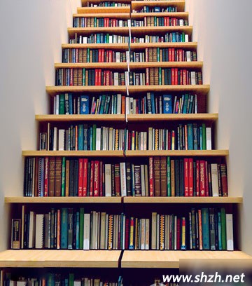 不管利用與否,樓梯始終會占據一定空間。顯然,它屬于開拓收納再合適不過的新渠道。收納的方式可以多種多樣,開放式、隱蔽式、裝飾點綴式等等,具體可以結合房間結構以及個人愛好進行設計,將它變成知識的海洋。