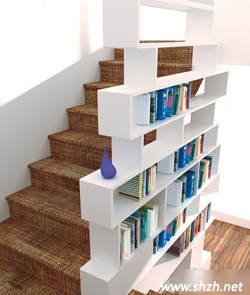 年輕人越來越難忍受自己的生活、自己居住的地方總是一成不變,而返璞歸真的風潮越來越勁,木盒子也成了時髦的物件,那么,活動的木盒子是不是也可以給樓梯周邊帶來些新鮮呢?你不妨試一試,將活動的木盒子搭建成書架的模樣。