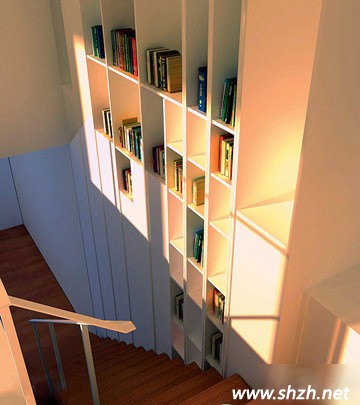 千萬別覺得樓梯旁邊的墻體除了掛照片、畫裝飾畫等裝飾用途外已無他用,既能儲物,又能收納你的書籍,那才是一舉兩得的好想法。不過,我們并不建議你將樓梯旁邊的墻體大面積掏空,因為墻體要承受整個樓梯的大部分壓力,所以,小面積的利用是更為恰當?shù)姆绞健H绻胍竺娣e改造,需要事先對墻體進行鋼結構加固處理,另外,還需要注意墻體的原有功能設置是否會與改造發(fā)生沖突。