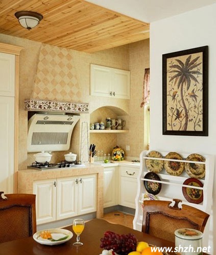 最后介紹的這款小廚房,非常樸實(shí)大方。而且亮點(diǎn)很多,比如內(nèi)嵌式的油煙機(jī)設(shè)計(jì),以及轉(zhuǎn)角處設(shè)置的拱形門收納,都會(huì)產(chǎn)生非常不錯(cuò)的視覺(jué)效果。再配上歐式的櫥柜門板設(shè)計(jì),讓小小的廚房更具有田園般的浪漫風(fēng)情。