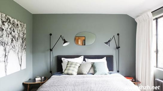 臥室是休息的重要場所,人的一天1/3的時間是在床上度過的,因此,臥室一定要以溫馨舒適,能有助于人的睡眠為主。這款設(shè)計就特別的簡單溫馨。淡綠色;與白色相搭配就是挺不錯的視覺效果。而且映入眼簾的床頭那一面不規(guī)則鏡子也是很有趣味的,裝飾效果非常好。