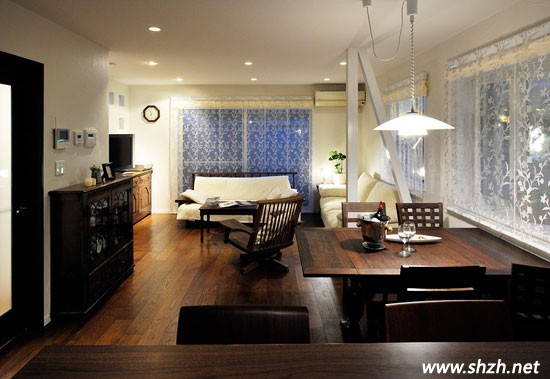 日式風(fēng)格設(shè)計喜歡采用原木裝扮家居,非常特近大自然的生活環(huán)境。客廳的設(shè)計,一眼忘去映入眼簾的則是深木色的地板,紋理清晰可見,自然氣息濃厚。同樣餐桌也是采用原木作為材質(zhì),整個空間不僅搭配和諧,還具有立體感。但是,居室的其它區(qū)域,卻明顯的呈現(xiàn)出現(xiàn)代時尚的感覺。比如白色的布藝沙發(fā),顯得干凈整潔,寬敞舒適,使得單一的空間有了一絲時尚的味道。窗簾的選擇上也別具個性,鑲嵌白色的花紋,顯得更加的浪漫溫馨。
