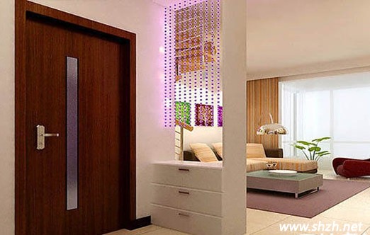 此圖的玄關(guān)裝修并沒有使用大面的玻璃然后加上一些彩繪點(diǎn)飾。而是采用單一的紫色彩繪玻璃連成串當(dāng)作玄關(guān)。與客廳的簡(jiǎn)約裝修風(fēng)格一致。但是采用紫色室內(nèi)彌漫著永恒的愛的真情浪漫。