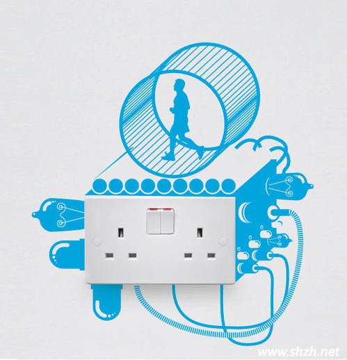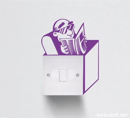 開關(guān)里面躲了個老頭在看書,靠著的沙發(fā)一定很舒服,3D效果的開光墻讓我們誤以為開關(guān)是凸出來的。