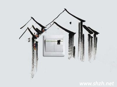 通過幾筆就將古代民屋融入開關(guān)之上,把開光當(dāng)作了屋子的窗口,打開了開關(guān)如同打開了窗戶。