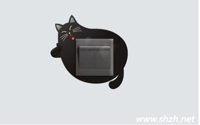 調(diào)皮貪吃的大黑貓把開關(guān)吃到肚子里面去了,我想這么可愛的圖案放在黑色系的室內(nèi)也會讓人眼前一亮吧。