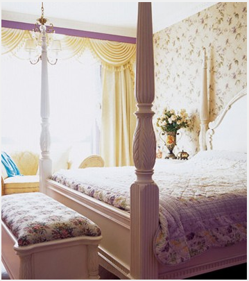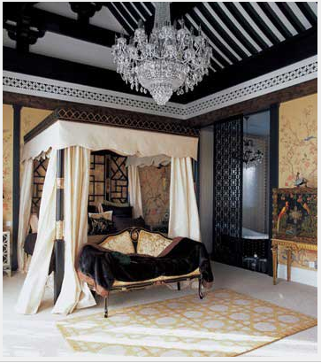 讓人側(cè)目的還有房間中央的那張幔帳低垂的四柱床。它該是這里的主角。設(shè)計的主旨很明顯,就是要給人一種震撼的視覺效果。這個房間無處不散發(fā)著欣喜、華美的格調(diào),而與此同時,勃勃的生機也便蘊含在這里的每一處細(xì)節(jié)之中了。是啊,讓人感覺振奮的細(xì)節(jié)都在了,遠(yuǎn)離嗜睡的日子還會遠(yuǎn)嗎?