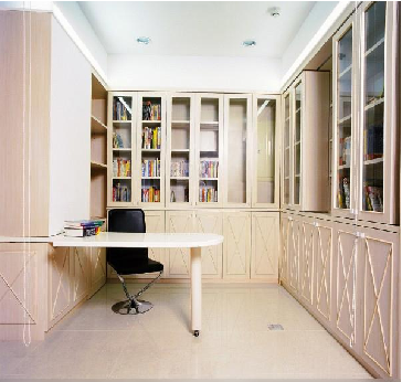 整體的書柜或收納書本、玩具、各種手工作業(yè)的儲物柜,充分發(fā)揮定制家具空間化、立體化的功能。