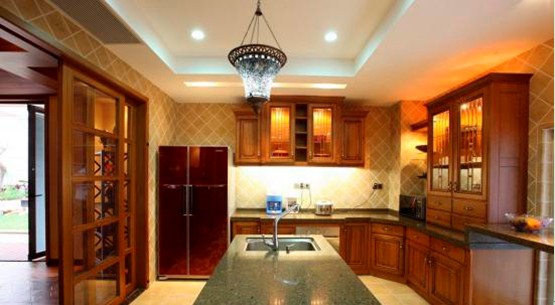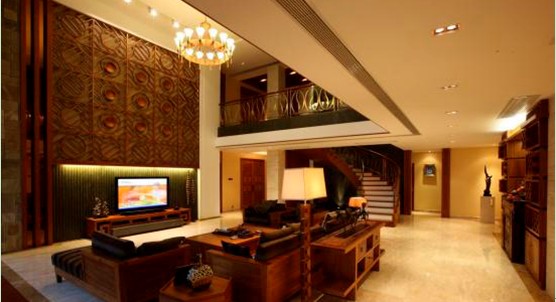 玄關設置實木屏風與簡樸的石材相結合,不僅符合中國傳統(tǒng)玄學理念,又豐富了空間的層次??蛷d地面戶外木地板延伸至花園的水池、飯廳的門均采用折疊式鋁包實木門、視野、采光十分開闊,使室內(nèi)空間更好地與室外水池、園林相呼應。東南亞獨特、優(yōu)美的藝術擺設,更加襯托了主人的愛好和品位。滿足業(yè)主提出的舒適、休閑的要求。