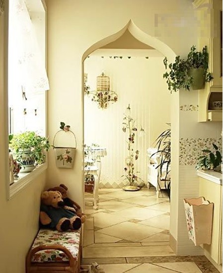 用花來裝飾落地?zé)魷剀袄寺?,可愛又?dú)特的踢腳線把濃濃的田園風(fēng)發(fā)揮到極致。