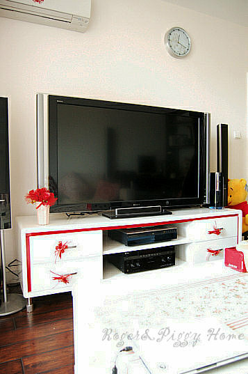 客廳的面積比較小,客廳與電視機相隔一邊,上圖為電視柜的特寫。