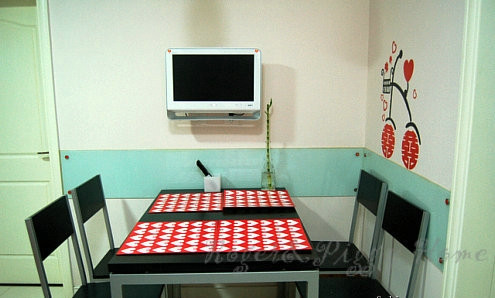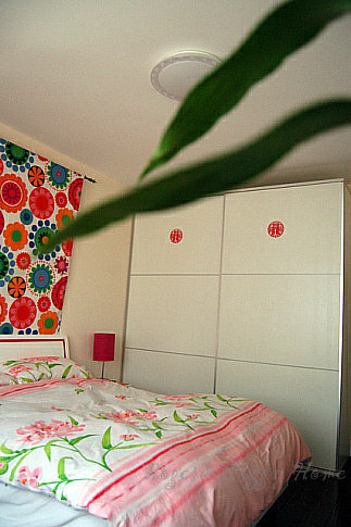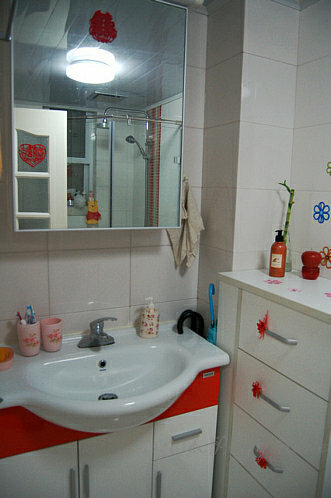 較小的空間里太過艷麗的主色調(diào)會讓空間產(chǎn)生窒息感,穿插的色彩更能突顯喜慶的本色。