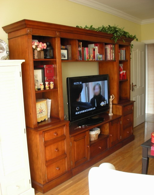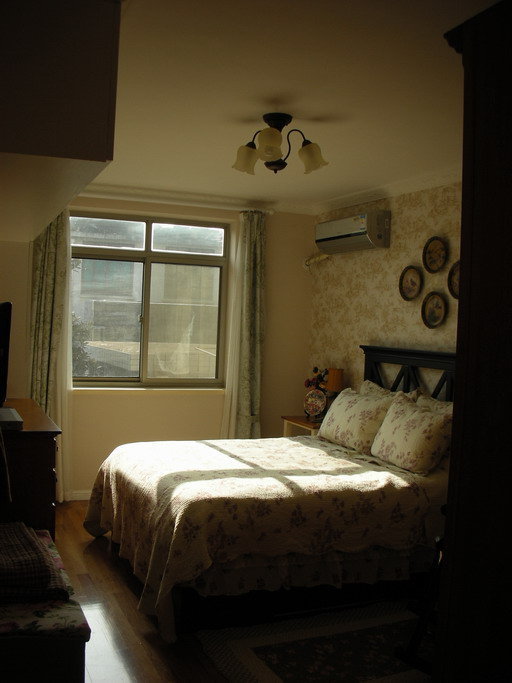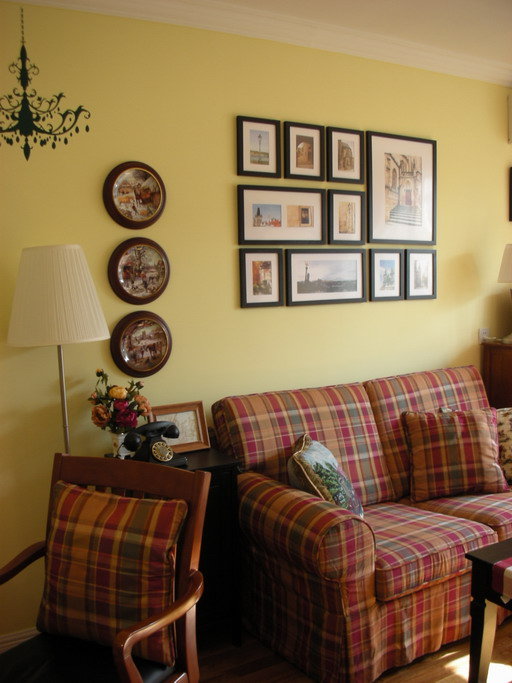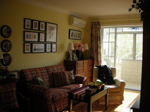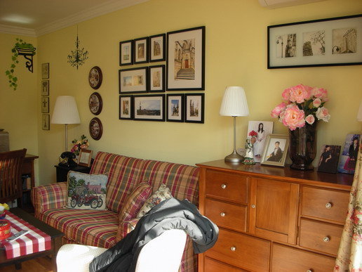 上圖為入住一年后拍的,家具已經(jīng)全部進(jìn)場,原先單一的米黃色墻面在這些老紅木家具的襯托下更顯溫馨。