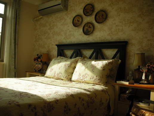 家具雖然都是比較老式樣的家居,但墻面上的綠色的手繪卻又能尋到時(shí)尚的氣息。