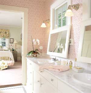 主浴室的櫥柜選擇相當(dāng)重要。如圖所示L形的組柜最大限度的利用了主浴室里的角落空間。同時,整個浴室空間更顯氣派、敞亮。L形組柜的右側(cè)部分還提供了非常好的展示空間。