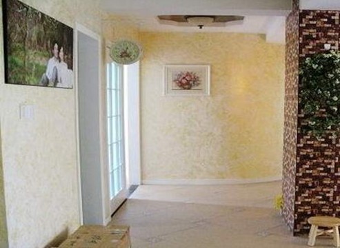 通往臥室的弧形過道,墻上掛的十字繡是同事幫忙的,我實在沒信心繡了