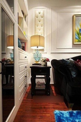 餐邊柜的后面就是一個衛(wèi)生間,戶型有點怪,但不影響整體效果。