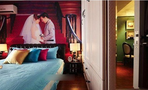 主臥室,墻壁上面是屋主的照片,超大的。
