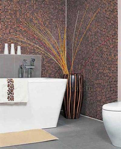 概要: 與客廳一樣,浴室也需要有一面獨(dú)有的“主題墻”。主題墻的魅力在于,它的色彩和廓形能為整體衛(wèi)浴增添醒目的時(shí)尚感。整合了浴室的所有色彩精華:浴室家具、面盆、龍頭、浴室鏡、瓷磚、馬賽克……,創(chuàng)造了衛(wèi)浴中極富個(gè)性的視覺(jué)核心,以及無(wú)限快樂(lè)的主題衛(wèi)浴生活。 棕色給人一種沉穩(wěn)、高貴之感,大面積的棕色馬賽克和造型硬朗的浴具搭配,營(yíng)造出平穩(wěn)卻不乏生動(dòng)的空間。