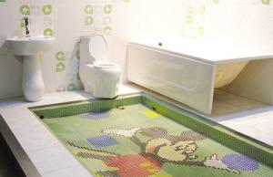 水循環(huán)系統(tǒng):在兒童衛(wèi)浴間設(shè)置水循環(huán)處理系統(tǒng),循環(huán)池底面配以可愛的卡通馬賽克圖案,利用面盆及浴缸使用后的污水,循環(huán)處理后進(jìn)行馬桶沖洗,不僅有效地節(jié)省了水資源,更在日常生活中熏陶了孩子節(jié)約用水的意識(shí)以及環(huán)保精神。