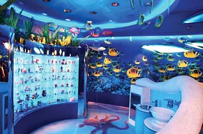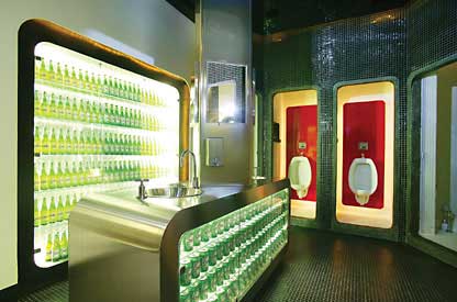 臺**中中友百貨公司推出的十三套主題盥洗設(shè)備,從普普藝術(shù)到巴洛克風(fēng)格,將馬桶及其盥洗空間設(shè)計(jì)成叢林或水族世界,每套主題盥洗設(shè)備造價(jià)與裝設(shè)費(fèi)用高達(dá)三萬美元以上。