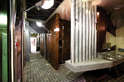 以華麗金屬色調(diào),搭配鮮紅的休憩椅,大片珠簾環(huán)繞中島化妝臺區(qū)域,水晶燈及金色雕框鏡子環(huán)繞其間,呈現(xiàn)金碧輝煌的雍容氣度。值得一提的是,其中一間廁所,針對仕女特別設(shè)置自動(dòng)沖水的下身盆,如此貼心的設(shè)計(jì),比五星級還五星級,讓如廁也是一種人生的享受!