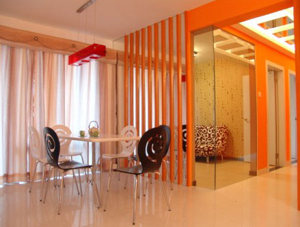 空間用色很大膽,但是整體效果卻是非常的漂亮時尚。鮮亮的橘紅色非常的出彩。