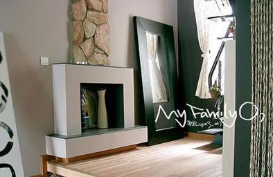 自己設(shè)計(jì)的壁爐,旁邊的落地鏡是宜家買的800元,有點(diǎn)心痛