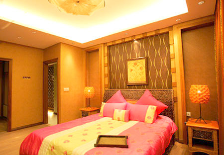 臥室淡粉色的床充滿著妖滴滴的味道,充滿女人味的柔媚色彩。