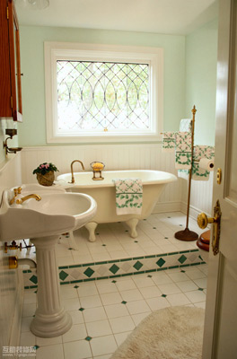 三要素定色屬于暖色系的紅、黃、橙,令人溫暖、喜悅,同時使空間感覺變小,而藍、綠等冷色系的顏色令人感覺寒冷、冷靜,使空間感覺較寬敞;另外,彩度及明度較高的色彩可塑造空間的寬敞,反之則使空間有穩(wěn)重感。除了色彩本身,照明效果就象色彩的“魔術(shù)師”,相同的顏色常因不同的光線亮度,在視覺上產(chǎn)生差異。因此,為衛(wèi)生間選擇色調(diào)前,應(yīng)綜合考慮以上三要素。