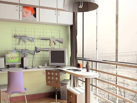 老戶型的房間格局通常不合理,所以想在有限的空間里擠出一部分空間是比較困難的,通過對陽臺的墻壁進(jìn)行打造,再進(jìn)行合適的尺寸測量,做成一個功能齊全的書房,讀書與工作相結(jié)合,并非難事在陽臺墻面立一整體書柜,下部設(shè)計成寫字桌面,頂部懸一伸縮式吊燈。由于陽臺的溫度普遍比室內(nèi)高,所以應(yīng)該注意陽臺的通風(fēng)及溫度的調(diào)節(jié),以免夏季持續(xù)的高溫造成書房家具的變形與干裂。