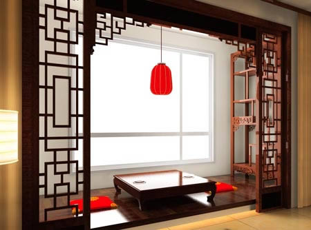 茶式風(fēng)格的陽臺設(shè)計是輕裝修、重裝飾的典范。古典的紅木雕花榻配以精致的小木桌;紅木雕花的燈籠下,擺放著全套的功夫茶茶具;傳統(tǒng)的吉祥圖案,在落地窗簾與真絲座墊上跳動;純毛地毯的色調(diào)又與桌上的瓷器相互唱和;飄逸的落地紗簾遮掩著現(xiàn)代的塑鋼窗。邀一摯友,盤坐于榻上,在明媚的陽光中,或在宮燈的光暈下,細(xì)細(xì)品茗,幽幽的茶香飄散,自然神清氣爽。