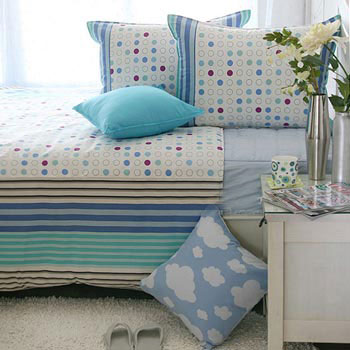 裝飾布藝是最容易出效果的,可以挑選有印花的各色布品來給家具做軟裝飾,在居室的局部融入一些田園風格的花朵圖案,讓鮮艷純色與精致小花圖案相互呼應,打破了視覺平淡感。