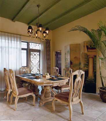 “回歸自然”是鄉(xiāng)村風格中最大的特色,它體現(xiàn)出更多的藝術(shù)感覺和多種木材質(zhì)地,更重視生活的自然舒適性。大量運用的“木質(zhì)元素”,能使整個家都彌漫著淡淡的木質(zhì)幽香??蛷d內(nèi)四處擺放的草本植物、綠色的木屋頂、原木的樓梯桌椅和一些具有鄉(xiāng)村氣息的裝飾物,各處和諧的清爽節(jié)奏使人感到無比輕松。
