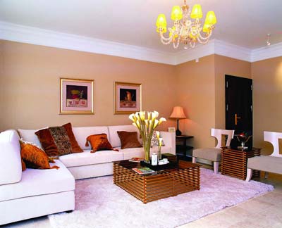 濃濃的暖色系無疑最能體現(xiàn)浪漫溫柔的感覺,但如何把暖色使用得既能適當(dāng)?shù)乇磉_(dá)出不同的家居風(fēng)格,而又能勾勒出不同的層次,這就要考驗(yàn)設(shè)計(jì)師的色彩功底了。為了滿足業(yè)主既時(shí)尚又簡潔,同時(shí)又要體現(xiàn)溫馨的女性情懷,設(shè)計(jì)師為業(yè)主選擇了簡歐羅馬風(fēng)情。同時(shí)客廳以黃色為主色調(diào),亮黃色的吊燈、淡黃色的墻壁、棕黃色的茶幾,再加上深黃色的靠墊,設(shè)計(jì)師巧妙利用不同程度的黃色詮釋了色彩勾勒的層次感;為了豐富空間,乳白色的沙發(fā)、白羊毛地毯再配上溫暖的米黃藝術(shù)壁紙,合理地搭配使簡歐裝飾風(fēng)格活靈活現(xiàn),同時(shí)顯得層次豐富、視覺豐滿。