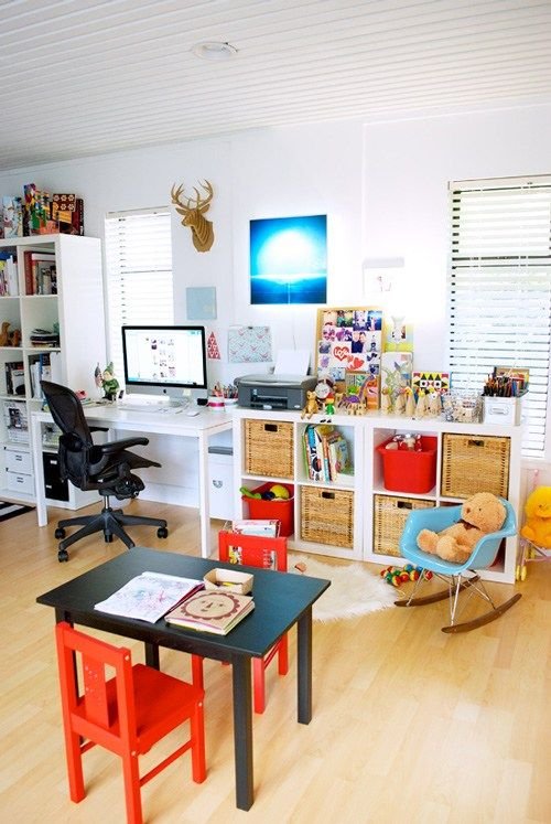 爸爸的電腦桌與小寶貝的玩??臻g在一起,更能增進爸爸與寶貝的感情。