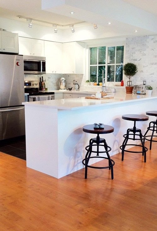 餐桌旁邊,紅色的嬰兒椅顯示寶貝家庭地位