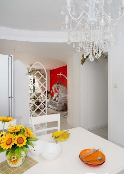 在眾多風(fēng)格里,韓式風(fēng)格給我們最大的感覺就是浪漫,這個(gè)可能也跟電視媒體有關(guān),大量韓國偶像劇里浪漫場景。這個(gè)面積不是很大的空間里,我們來看擅以浪漫烘托氣氛的韓式家居如何打造。本案例里沒有出現(xiàn)很多田園的花朵,而是用色彩來體現(xiàn)田園。紅色與黃色的跳躍,白色的大量使用,偶爾出現(xiàn)的綠色點(diǎn)綴出春意盎然的生機(jī),在這個(gè)韓式家居中,我們找到了更多的與生活的對話。若你能夠堅(jiān)持與細(xì)節(jié)對話,你將學(xué)會(huì)最本真的生命感悟。