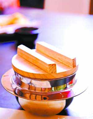 其實(shí)就是日本的煲仔飯煲,它是一個(gè)不銹鋼圓底煲煮出,連木架上。釜飯?jiān)谌毡臼且荒晁募径紩?huì)吃的主食。釜飯的煲蓋指定用杉木,好令米飯吸取樹(shù)木清氣,而煲身則非鐵或銻,貪其傳熱快。而味道則是求原味的清淡為主,師傅往往以上湯、日本釀造豉油來(lái)調(diào)煲仔飯專用汁醬。日本人吃時(shí)往往還會(huì)加入上湯,燒熱了一起吃。它的大小恰好一煲就是一碗飯分量,配味噌湯,飯里加入了蛋絲、木耳絲、冬菇絲等料,主料往往是雞肉、牛肉等,其中以雞肉最受歡迎。那是連皮略燒過(guò)的雞腿肉,雞骨一早被起出,嫩滑多汁。米飯煙韌入味,軟身之余黏度也夠,甜鮮度恰好。