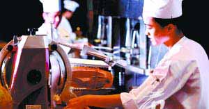 概要: 工欲善其事,必先利其器。以前中國(guó)廚師行走江湖的行李很簡(jiǎn)單,必殺孖寶一雙就是,它們分別是半徑一尺六的大鐵鑊一只,萬(wàn)能鐵菜刀一把。成名師傅一般是兩寶隨身走天涯,也有藝高人膽大的干脆就一把菜刀走天下。如果是在廣州,比較講究的粵菜師傅還會(huì)使用香港老號(hào)陳枝記的刀,夠鋒利順手。