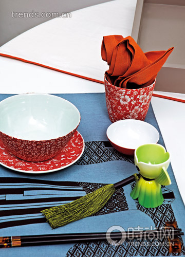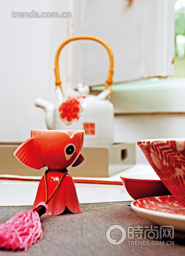 中國人講究飲食文化,春節(jié)里的家宴更是馬虎不得。讓我們看這個場景:古雅的花窗下,一場盛宴正要開始。白色圓桌上,年年有“魚”的桌旗上,盛滿了一桌的喜氣洋洋?;ǘ涞谋P碗碟,是歡喜的紅色,散發(fā)著濃郁的中國氣息。一笸籮的山楂,映襯著金紅色的鯉魚的圖案,滿目的是鮮亮與快樂??蓯鄣慕痿~蛋杯,雖然是最傳統(tǒng)的中國經(jīng)典圖案和意向,但現(xiàn)代時尚的設(shè)計讓我們眼前一亮。這一場盛宴,從形到色,既賞心悅目,又勾起食欲無邊。