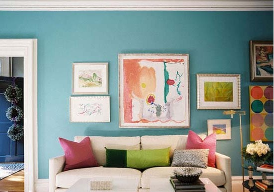 客廳一直都是家庭家人互動(dòng)的空間,是最好培養(yǎng)感情的重要場所。淡藍(lán)色的背景墻面上裝點(diǎn)著不同風(fēng)格的裝飾畫,趣味性十足,嬌嫩的色彩又增添些許春天的氣息。在色彩的區(qū)分下,整個(gè)空間層次分明,整個(gè)客廳視覺張力十足,白色在整個(gè)色彩運(yùn)用中點(diǎn)睛之用,不管是門框還是沙發(fā)甚至地毯都給空間創(chuàng)造出不少明亮的感覺。淺色實(shí)木地板,則更多的給空間帶來暖意。春天其實(shí)已經(jīng)來了。