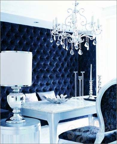 點(diǎn)睛:黑色用不好容易顯得沉悶老氣,所以黑色的家居用品一定要強(qiáng)調(diào)品質(zhì)感,皮革、錦緞都能較好地展現(xiàn)黑色的雍容與高貴。水晶、金屬制品是黑色最好的伴侶。