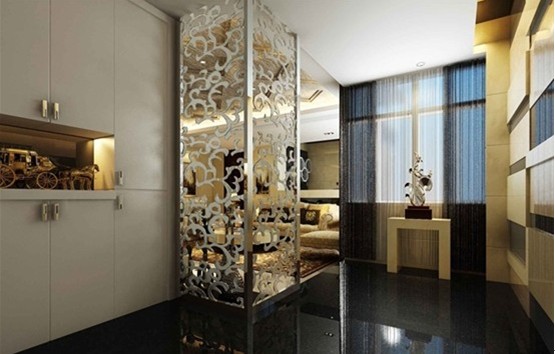 玄關(guān)之處,我們的視線從錯落有致的裝飾墻很好的引伸到遠處一趣味不凡的端景之后,再牽引了我們的視線到漏格處。依然萃取了古典風(fēng)格的張力,運用漏格雕花完美呈現(xiàn)玄關(guān)與客廳的過渡,展現(xiàn)了玄關(guān)立體與無盡的視覺感。