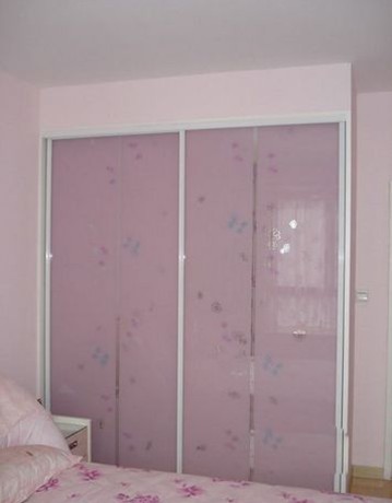 臥室以柔和的粉色系為主。連同衣柜也是淡淡的櫻花色。