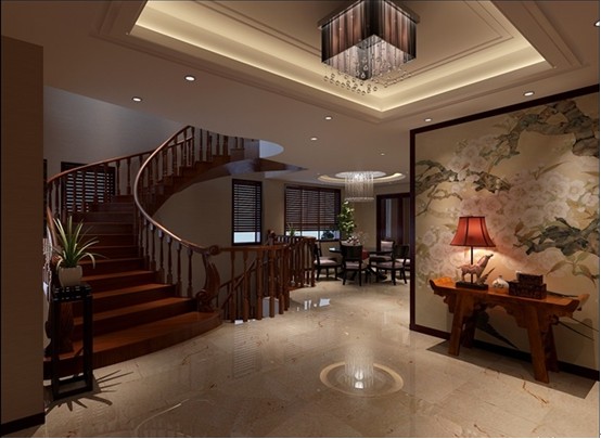 樓梯下的一處小景 別墅在許多不起眼的地方設(shè)置了一系列的景觀裝飾,給人仿佛是走進了大觀園般的新奇。它們都蘊含了水鄉(xiāng)的文化與點滴歷史。盤旋而上的樓梯牽引著人們的視線到這一端景處,古色古香的梅花隔斷,彰顯業(yè)主不煩的氣度。從色彩到陳設(shè),展示了一個多元化的空間,中式的家具、歐式的吊頂、韓式的吊燈。無論是哪種軟件設(shè)計主題風(fēng)格都與整體色調(diào)想通。
