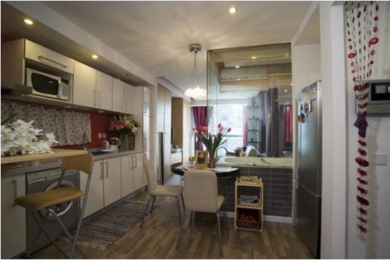 末日的情人節(jié)你搞定了她嗎?看到這句廣告標(biāo)語時(shí),可能這就是眾多男主的心聲了。本案例的是一件為情人節(jié)而備的浪漫小戶型,它的驚艷程度會(huì)讓情侶大吃一驚。二人世界,只為二人考慮。小小的空間里,臥室,客廳,廚房,衛(wèi)生間等都一一得到體現(xiàn),且又不顯亂,如何最大限度地利用空間做收納的確很讓人費(fèi)思量。